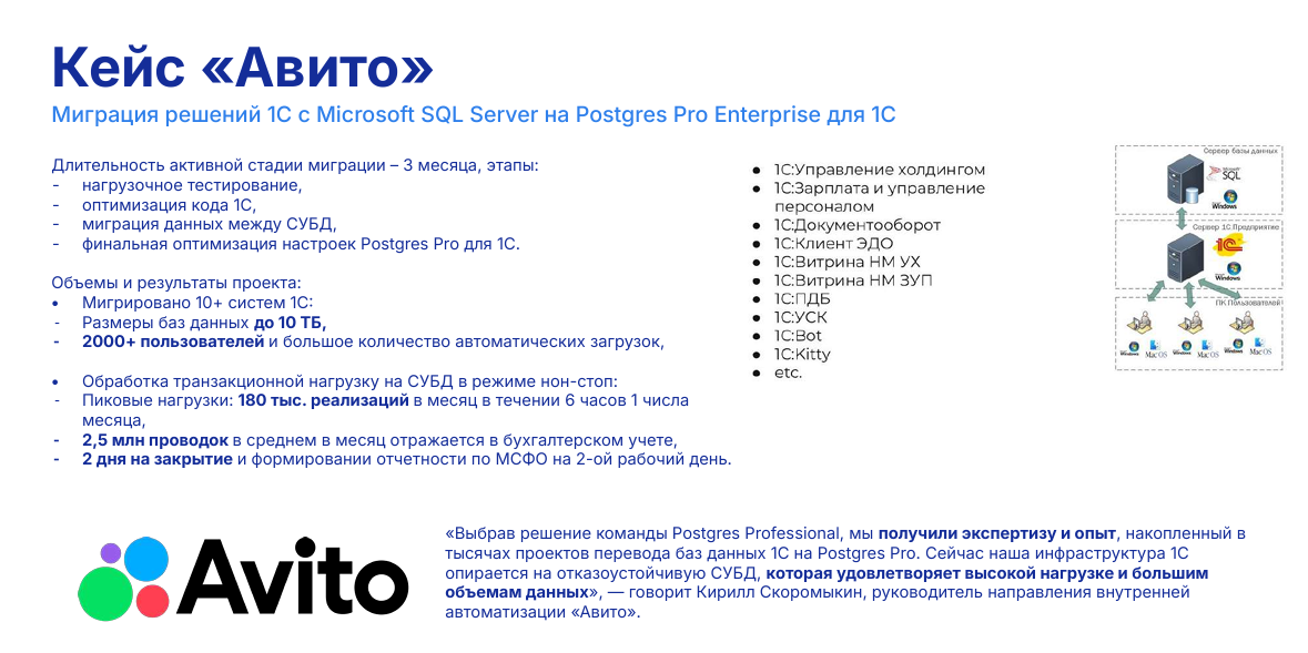 Использование MS SQL в 1С – больше не базовый сценарий: компании переходят на отечественные СУБД. По итогам вебинара о Postgres Professional разбираем, как выглядит современная альтернатива и какие возможности она дает под нагрузкой.