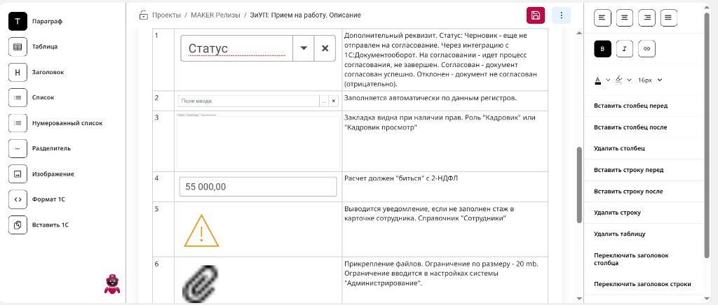 Вместе с обновлением сервиса до версии 2.10.1 разработчики предоставили пользователям возможность выгружать формы не только в форматах PDF и DOC, но и в виде документа программы. Это помогает существенно оптимизировать командную работу над проектом: корректировки и изменения можно оперативно вносить прямо в MAKER-STUDIO.