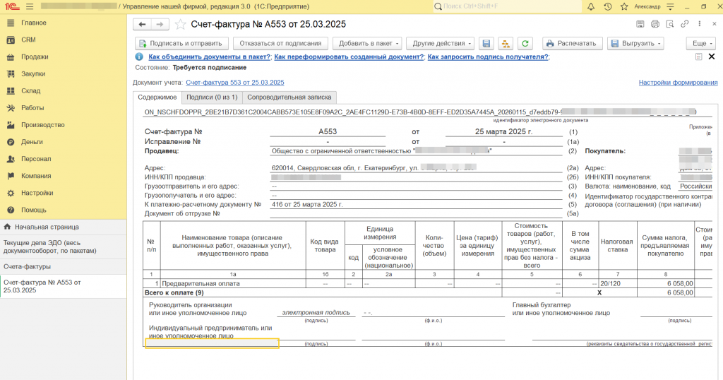 - Префикс «А» для авансовых СФ – привычная логика нумерации, как в «Бухгалтерии предприятия».