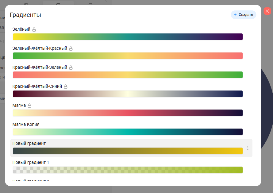 Переработано управление цветовыми градиентами: формы редактирования, списка градиентов получили новый дизайн и разделены для удобства; выпадающий список стал нагляднее – из него можно сразу перейти к редактированию выбранного градиента или к созданию нового.