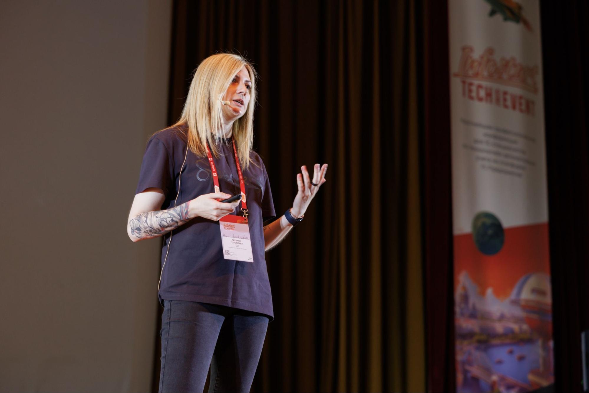 Модератор секции «QA: Тестирование и качество ПО» Татьяна Головкина выступает с докладом «Анатомия Docker-образа для тестирования 1С: что скрыто внутри?»