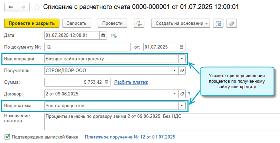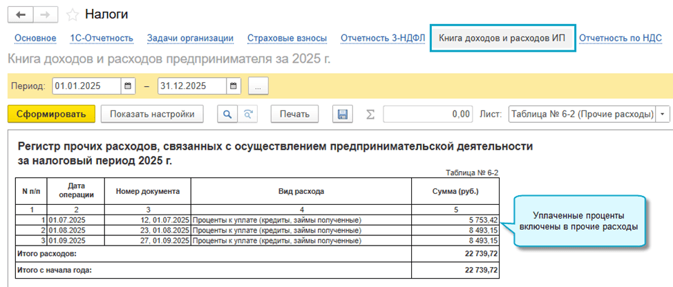 Учет в расходах ИП по НДФЛ процентов по займам и кредитам. Если в документе списания денег с расчетного счета или выдачи наличных указать, что производится уплата процентов, перечисленные суммы будут учтены в прочих расходах ИП по НДФЛ.