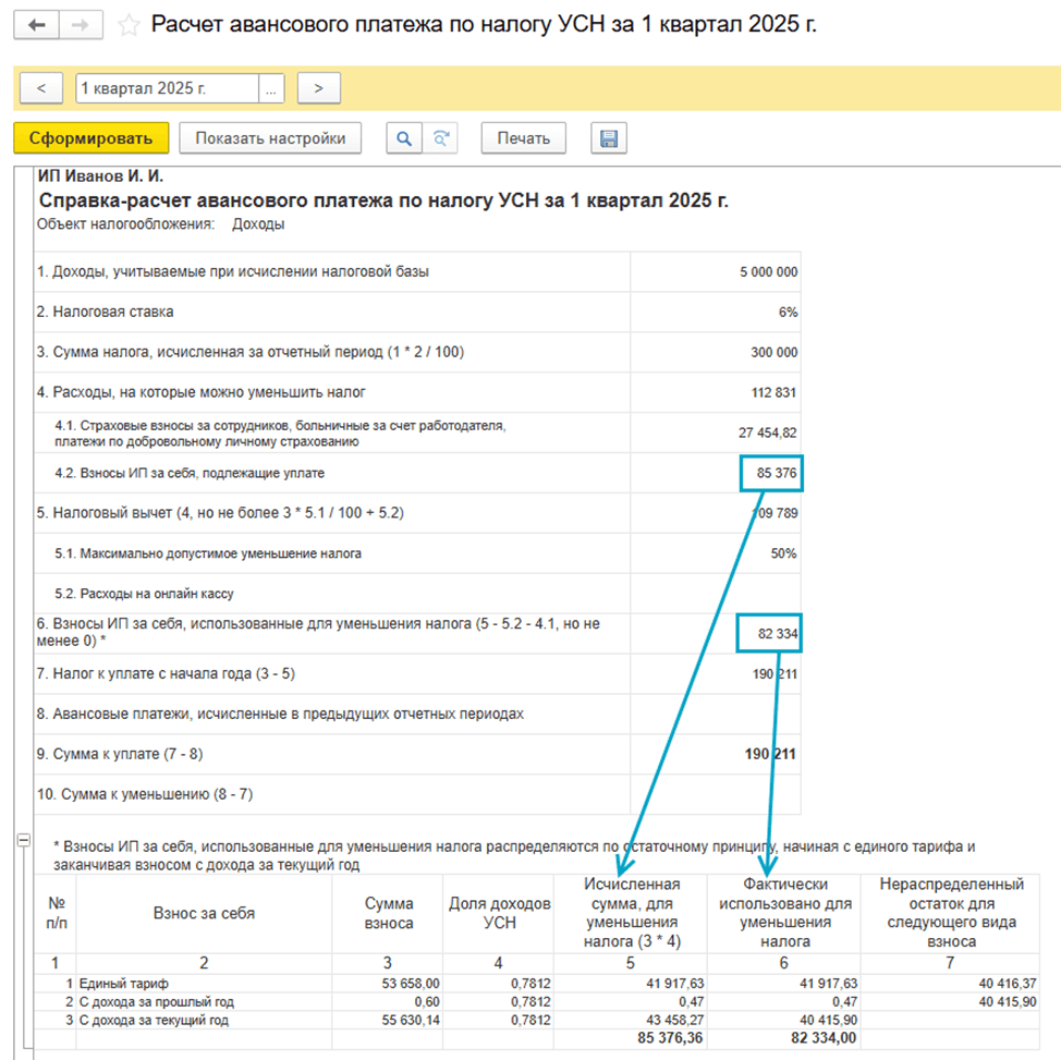 Расшифровка взносов ИП за себя, использованных для уменьшения налога УСН