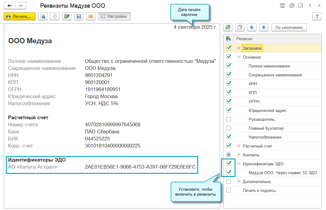 Идентификатор ЭДО в карточке организации. Источник: its.1c.ru