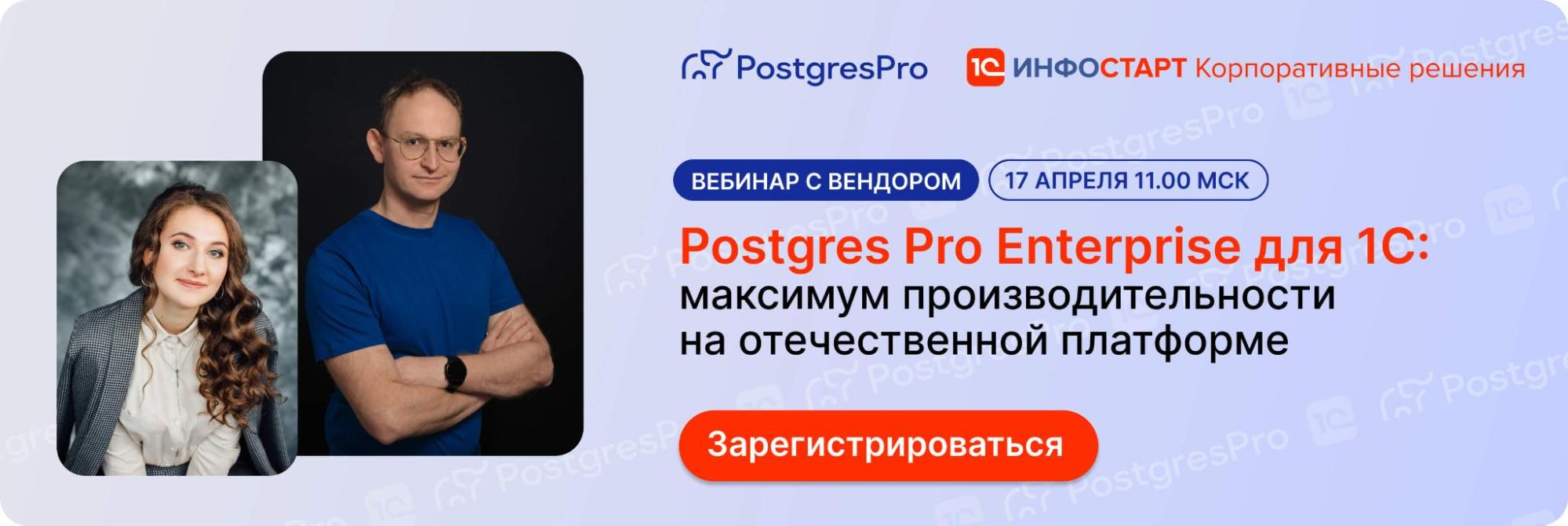 17 апреля команда Postgres Professional проведет вебинар, на котором покажет, как перейти на отечественную СУБД без потерь, и в ряде сценариев существенно ускорить работу 1С.