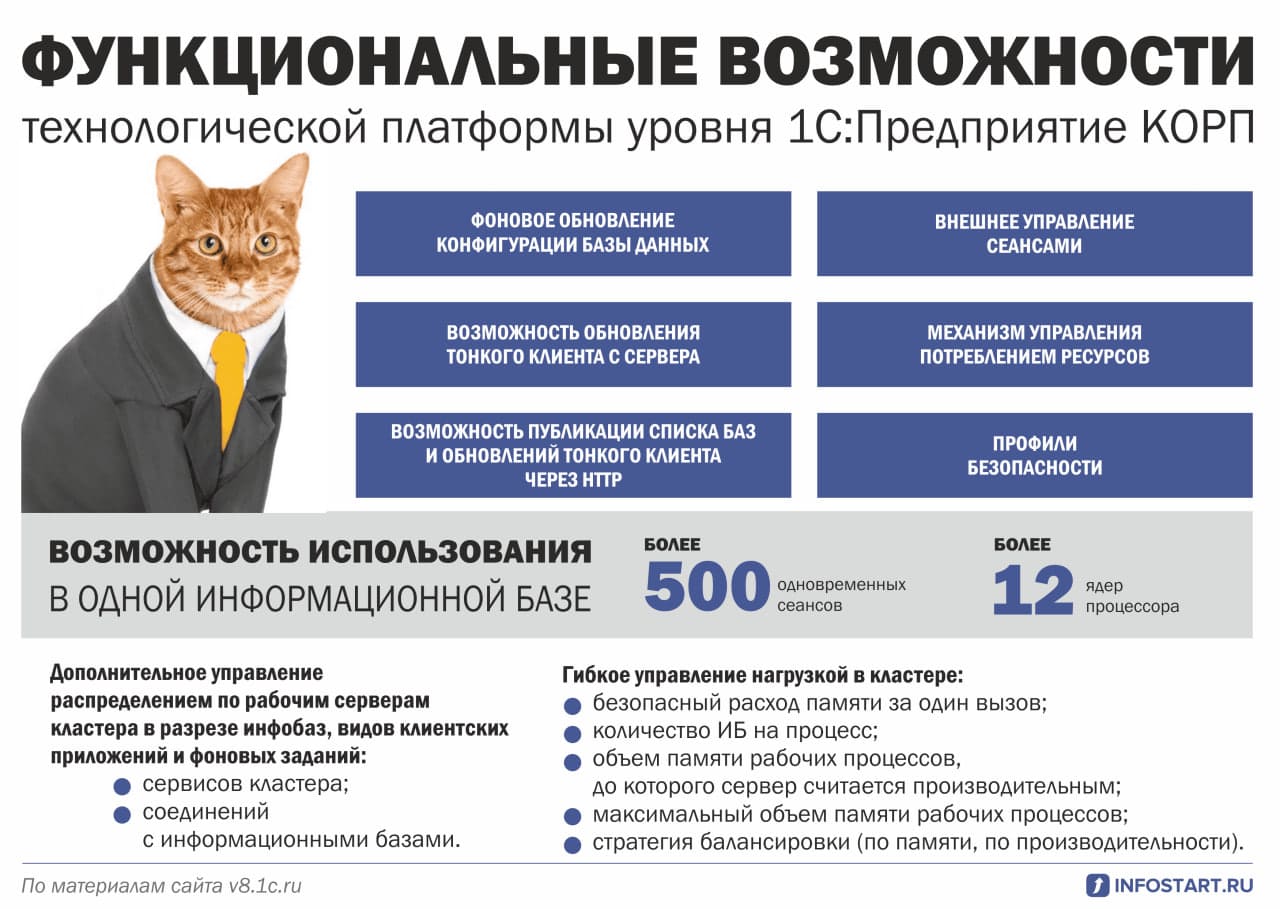 1С КОРП действительно позволяет обеспечивать большую производительность для «тяжелых» корпоративных систем, но достигается это благодаря более широкому и сложному инструментарию КОРП, который требует не только лицензий, но и экспертные компетенции по настройке и администрированию платформы.