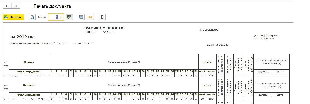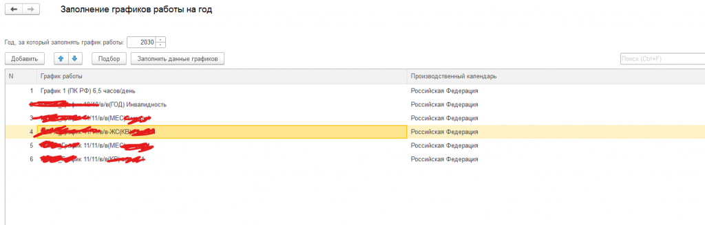 Заполнение графиков работы списком на год в ЗУП 3.1