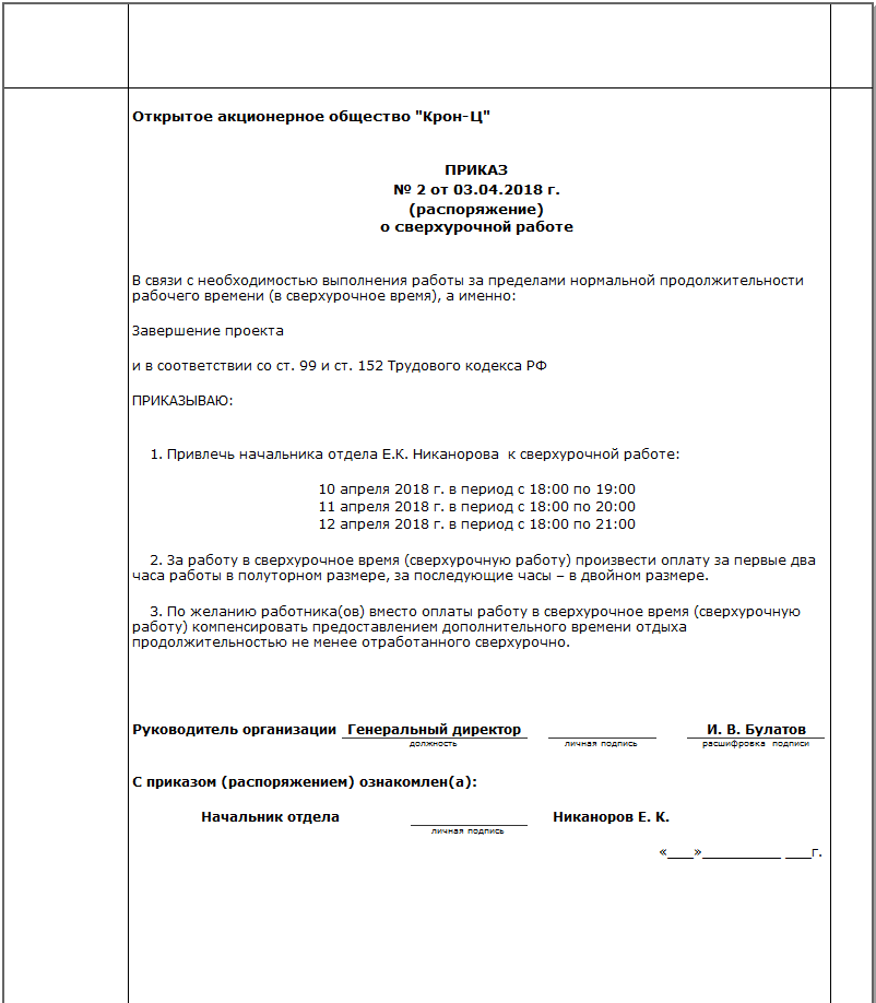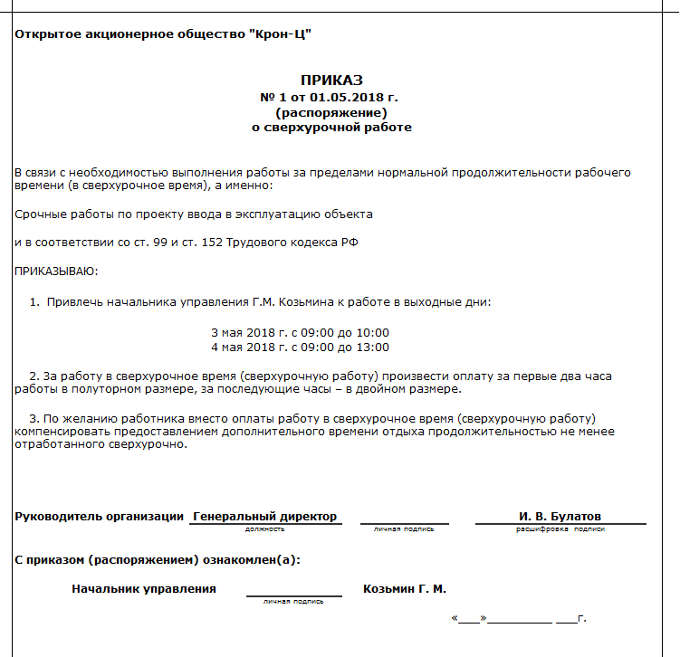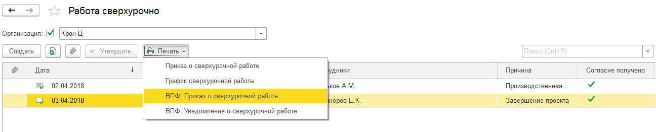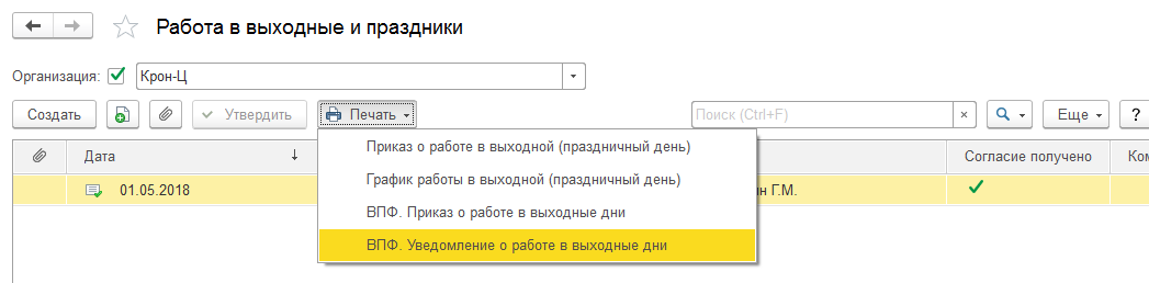 Внешняя печатная форма приказ и уведомление о работе в выходные и праздничные дни