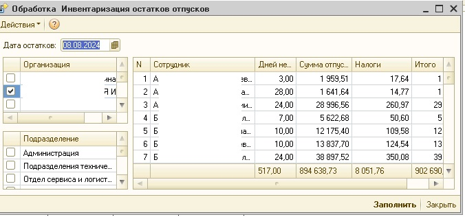 Выгрузка остатков отпусков из ЗУП 3.1 в Excel