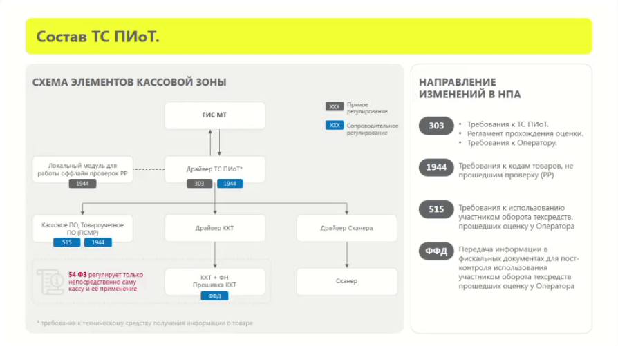 Важно, что ТС ПИоТ предназначен только для тех участников оборота, кто работает с разрешительным режимом – для розничных продавцов 22 товарных групп, утвержденных в постановлении правительства №1944 от 21.11.2023: