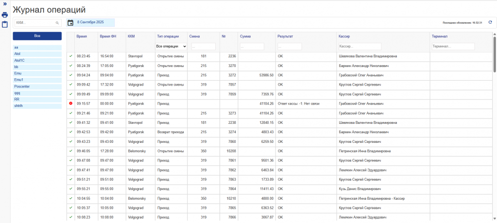 - установлен в каждой кассе;