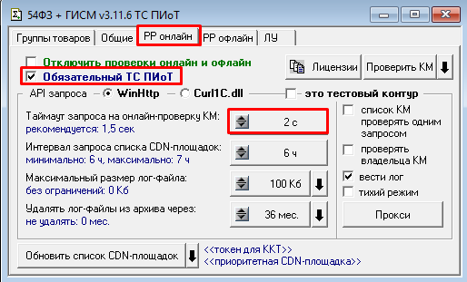 Подсистема прошла сертификацию в «Честном знаке» и вошла в реестр совместимого с ТС ПИоТ программного обеспечения. При ее настройке можно указать адрес подключения для ТС ПИоТ и установить для фискального накопителя флаг «Использовать ТС ПИоТ» – в этом случае при проверке КМ запросы будут отправляться в драйвер ТС ПИоТ. Снятый флаг отправляет запросы напрямую в ГИС МТ. Это настройку можно использовать в переходный период, когда нет возможности весь парк ККМ одномоментно перевести на использование ТС ПИоТ.