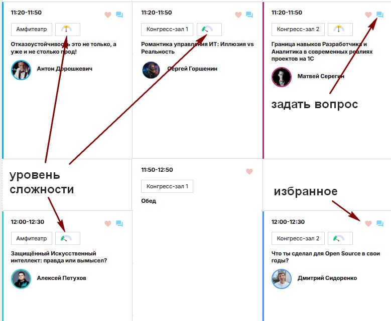 Чтобы определиться с маршрутом посещения залов было удобнее, у каждого доклада указан уровень сложности – легкий, средний и сложный.