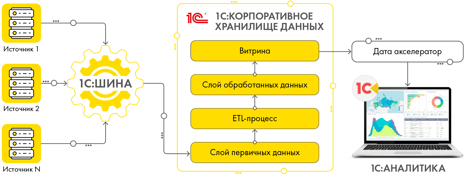 создание единой цифровой платформы, которая позволяет собирать и анализировать данные всех подразделений и информационных систем организации в единой среде с современным пользовательским интерфейсом 1С:Аналитики;
