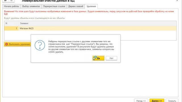 У пользователей обработки универсального удаления могут возникать сложности при поиске перекрестных ссылок объектов разных организаций. В обработке для этого специально отдельная вкладка разработана для отображения перекрестных ссылок. Вы можете анализировать скрытые поля объектов самостоятельно при помощи специальных обработок для просмотра реквизитов объектов. Если найти самостоятельно перекрестные ссылки не получается, можете обратиться к нам за помощью. Однако это помощь будет платная.