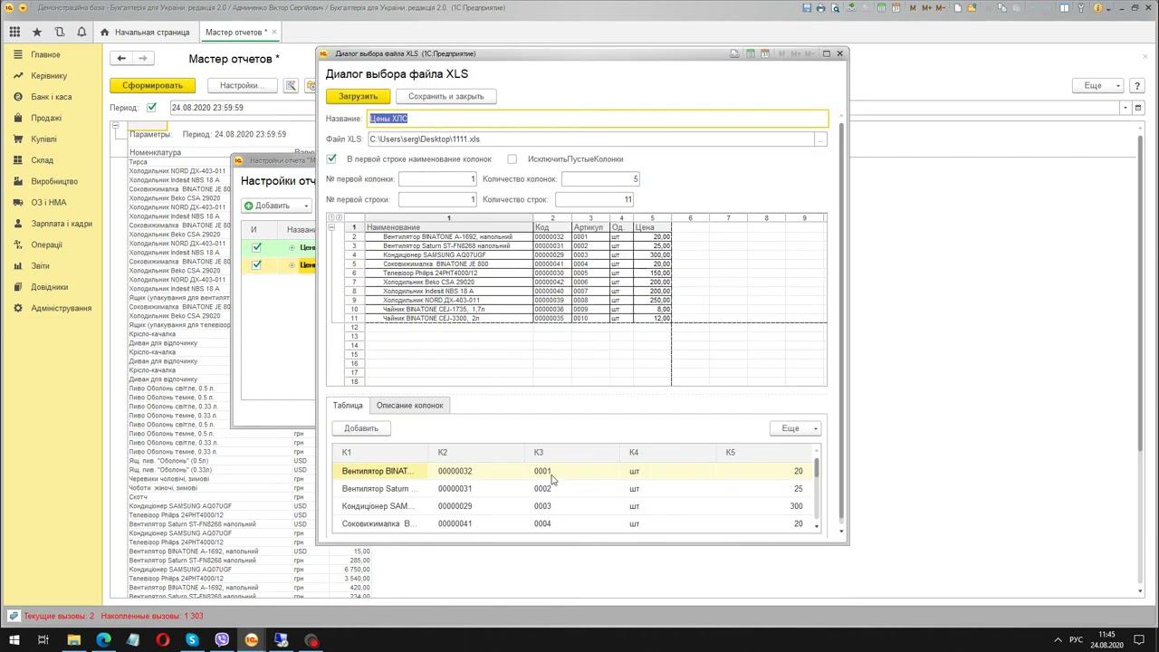2. Возможность использовать данные из xls файлов в формировании отчетов.