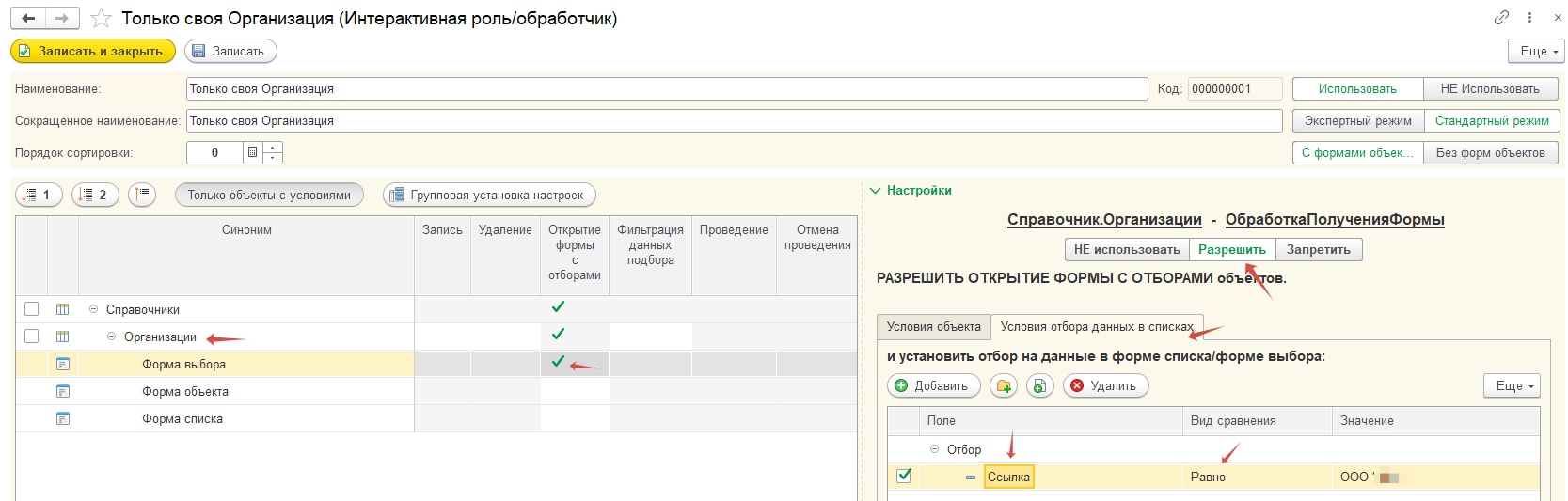 - Добавлена возможность защиты отбора, установленного интерактивными ролями, от изменения пользователем или сброса для форм списков или форм выбора. Ранее могли отборы сбрасываться.
