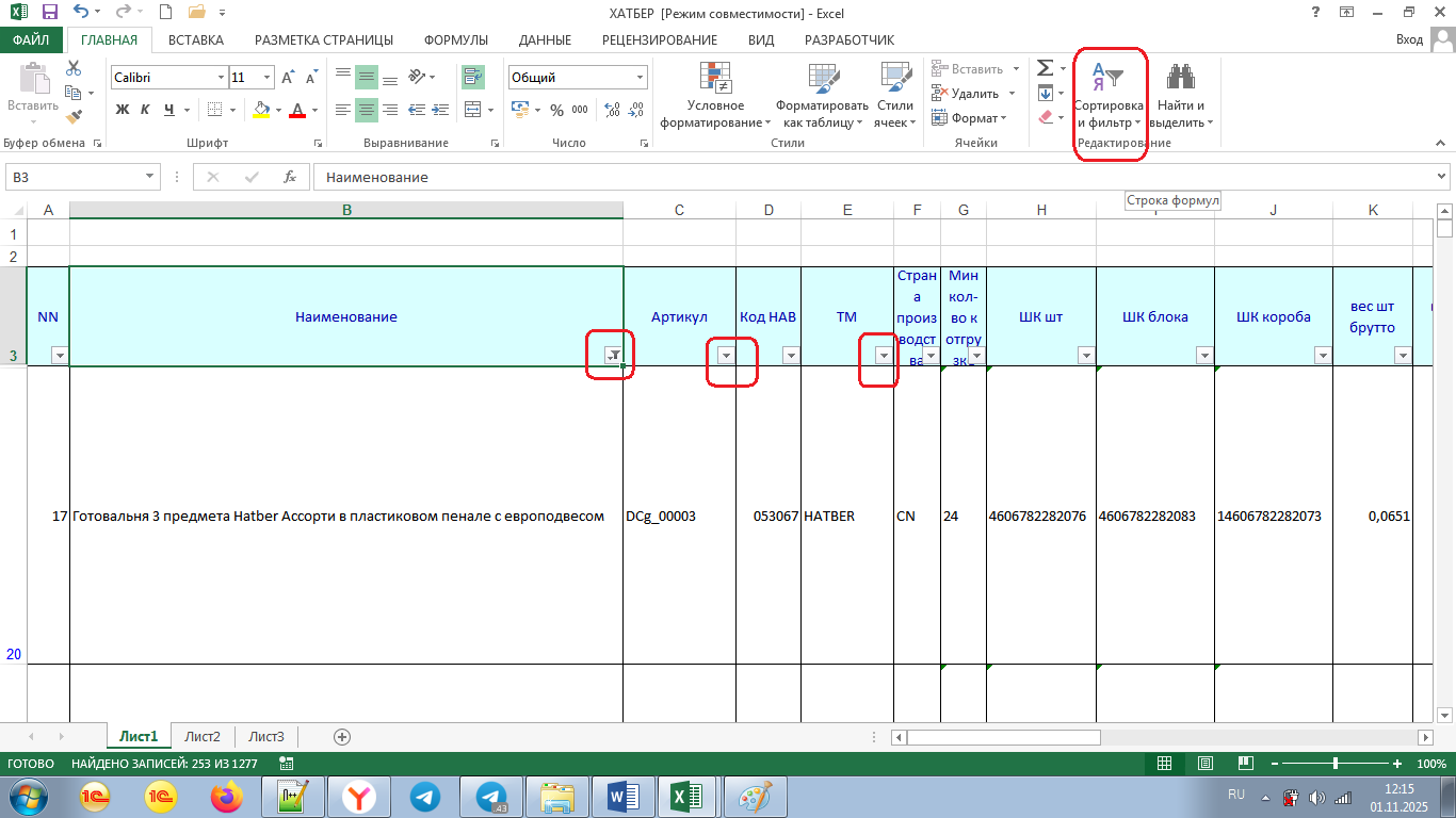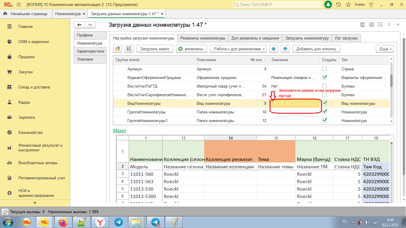 2. Закладка «Номенклатура»