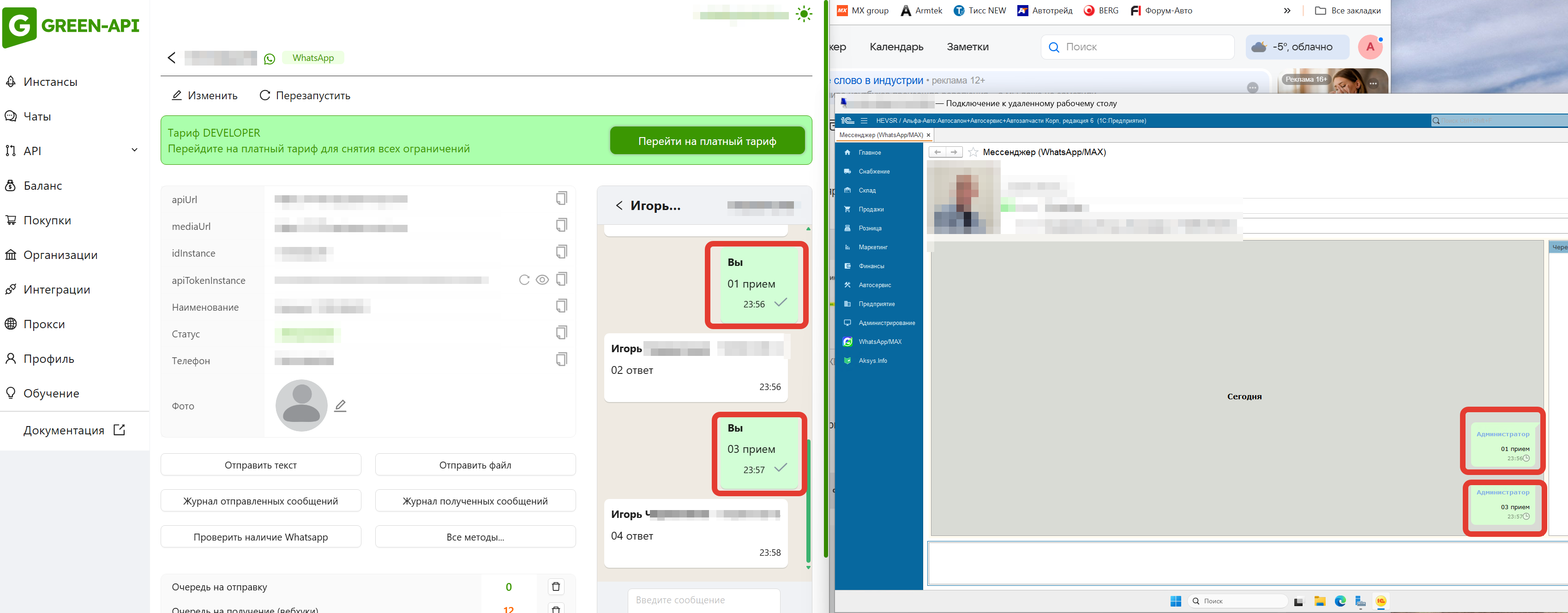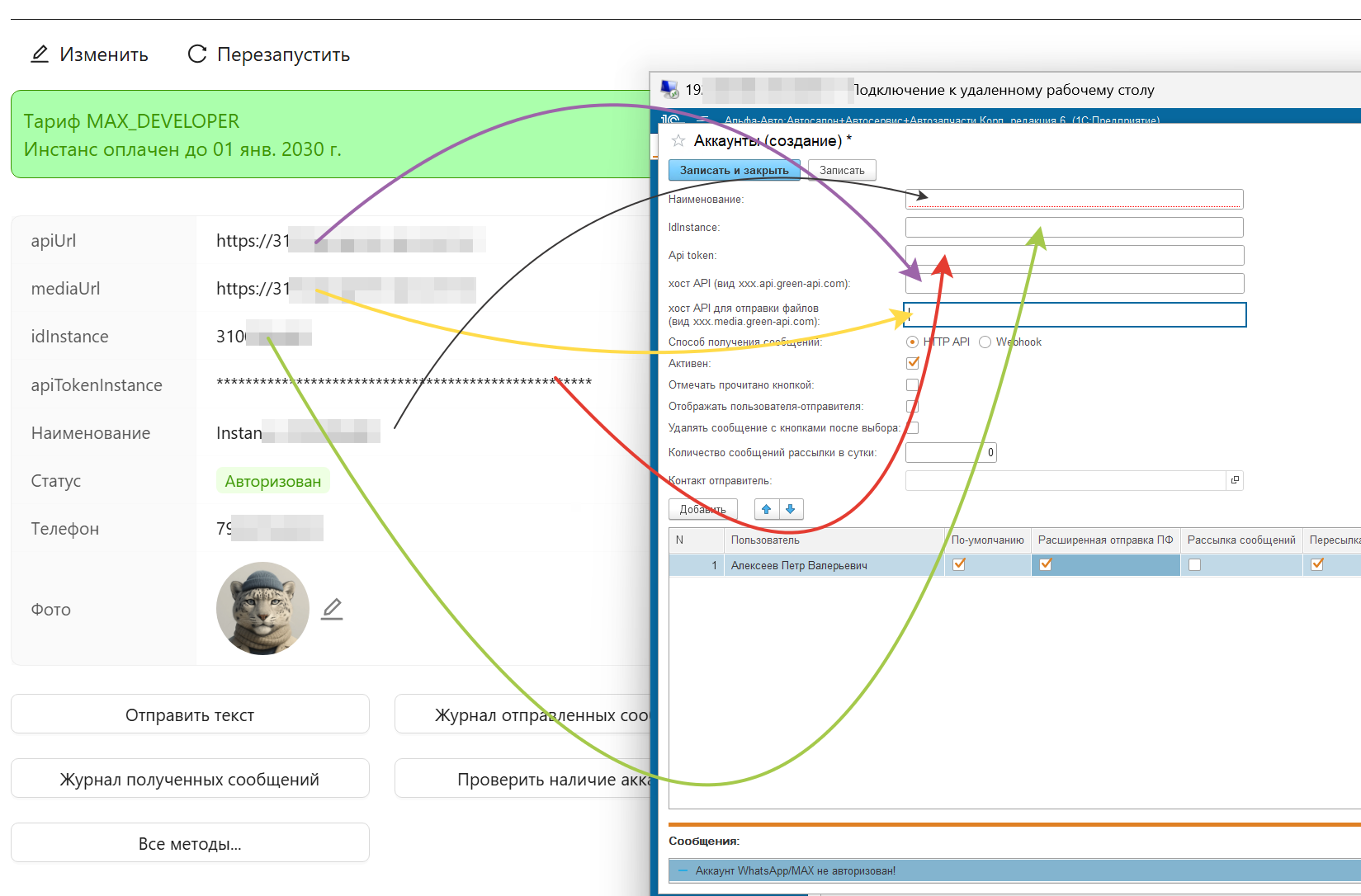 - Создать/активировать аккаунт на сайте green-api.