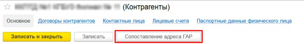 В открывшейся форме нажмите на кнопку «Сопоставление адреса ГАР».
