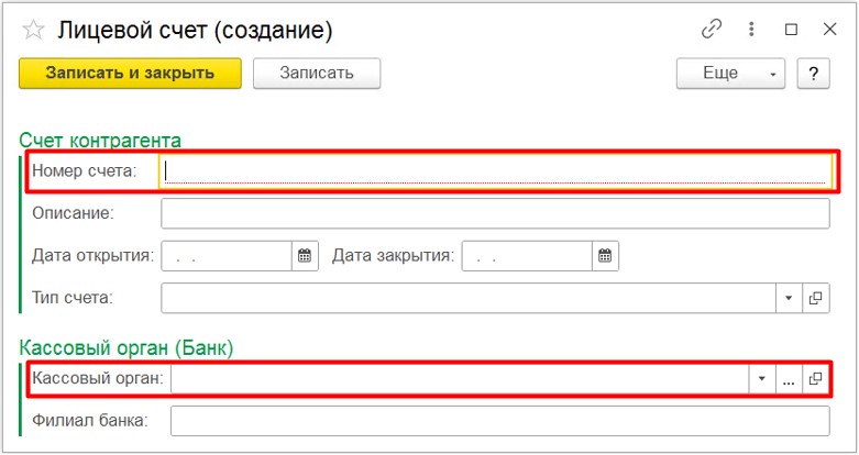 Далее перейдите во вкладку «Лицевые счета» и нажмите кнопку «Создать». В появившейся форме «Лицевой счет (создание)» необходимо заполнить следующие поля: