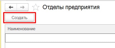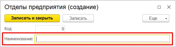 После нажатия кнопки «Создать» открывается форма «Отделы предприятия (создание)», в которой необходимо заполнить наименование вашего отдела.