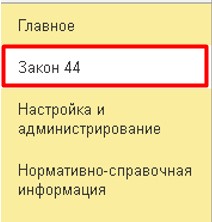 Для работы с единой информационной системой по 44 федеральному закону потребуется использовать раздел «Закон 44».