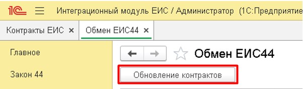 Далее нажимаем кнопку «Обновление Контрактов», после чего будут загружены контракты по вашей организации из единой информационной системы.