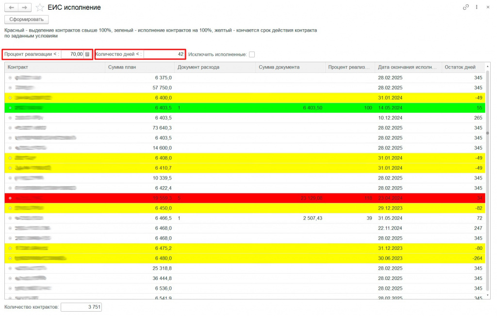 - Жёлтый – кончается срок действия контракта по заданным условиям.