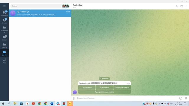 В состав поставляемого решения входит архив, который содержит cf файл с решением и инструкция по созданию бота в Telegram, внедрению подсистемы, настройке и работы с ней.