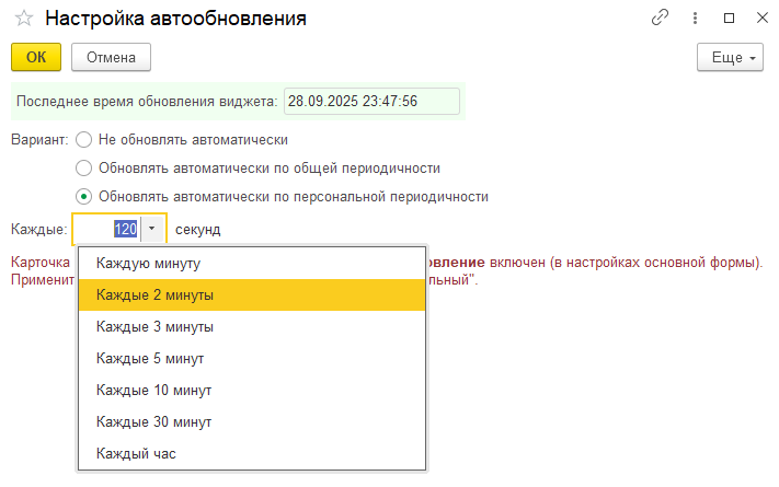 - Настройка периодичности обновления динамических карточек виджетов