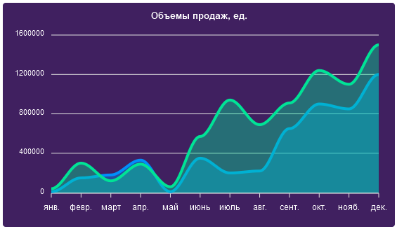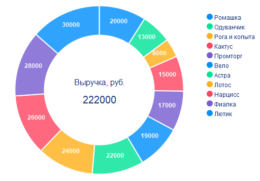 - Диаграмма по произвольным данным (например: график выручки за год в разбивке по месяцам);