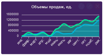 - Данное решение является конструктором и ускоряет разработку. Программист будет заниматься бизнес логикой и думать как получить требуемые данные, в все остальное - подсистема берет на себя (отображение виджета, вывод диаграммы, автоматическое обновление данных диаграммы, вывод табличного документа с данными при клике на виджет).