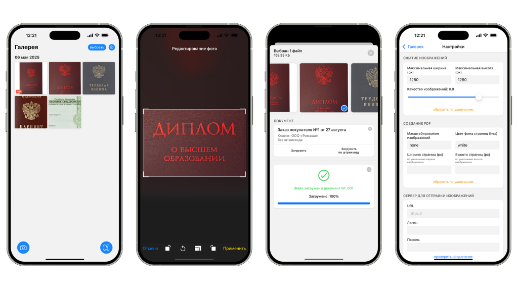 На смартфоне вручную открываете СканДок — в приложении уже указан нужный документ
