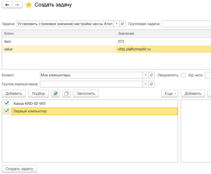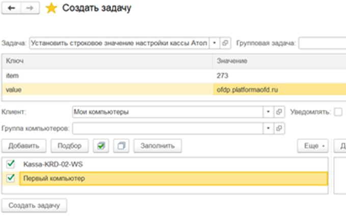 Также существует возможность делать настройки и получать текущие значения настроек ККТ. В данном примере будет выполнена установка значения адреса ОФД кассы «Атол».