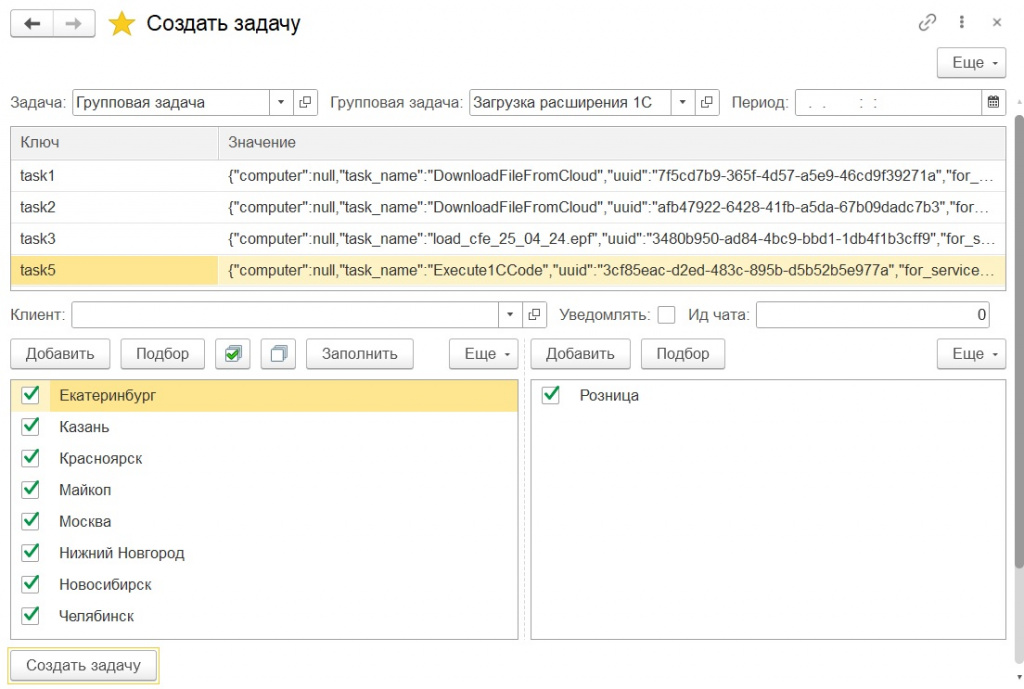 В конфигурации 1С «Управление компьютерами» есть раздел «Запланированные задачи». В этом разделе мы можем создать задачи, которые будут выполняться по заданному расписанию.