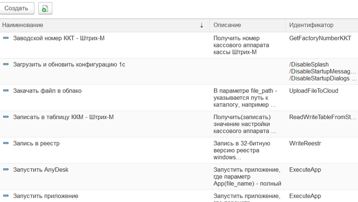 | Внешние обработки | Запустить внешнюю обработку 1С |