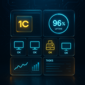 Решение создано на основе реального опыта сопровождения крупной торговой сети. За пять лет ежедневной работы были автоматизированы десятки однотипных задач:обновления 1С, установка драйверов, настройка касс, устранение различных ошибок.