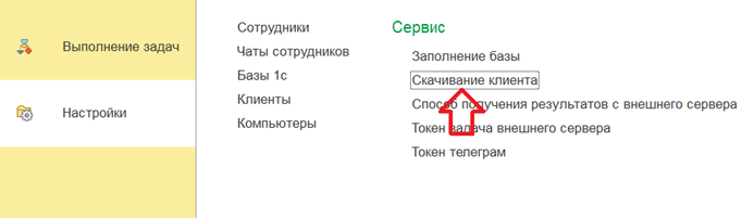 Для выполнения любых задач на удалённых компьютерах должен быть установлен клиент, который можно скачать напрямую из конфигурации