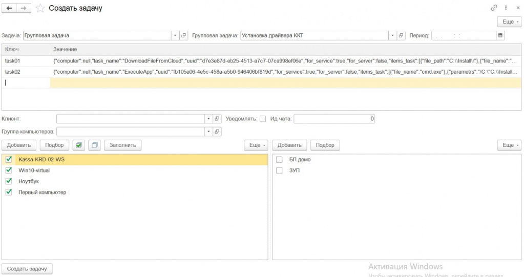 4. Запускаем задачу на выбранных компьютерах и проверяем результат.