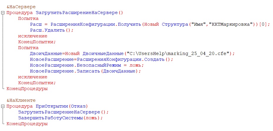 1. Создаём внешнюю обработку, которая удаляет старое расширение и устанавливает новое (.cfe).