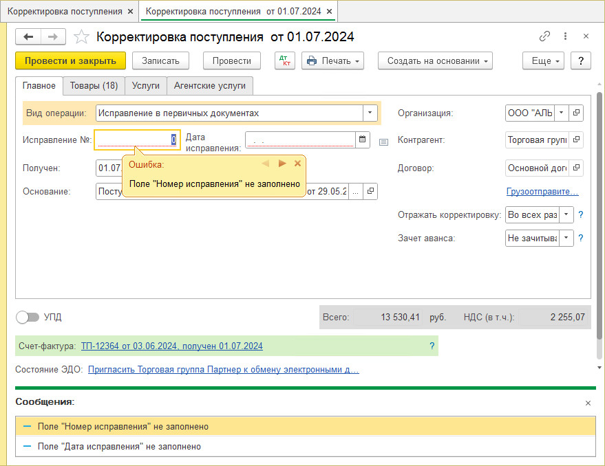 Также в представленных правилах обмена учтены и исправлены недоработки, касающиеся выгрузки документов вида "Корректировка реализации" в части установки признака "Бухгалтерский учет прошлого года закрыт для корректировки (отчетность подписана)" на вкладке "Расчеты" формы документа.