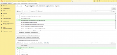 В верхней таблице выбрать пользователей, у которых нужно удалить роли. Можно выбрать нескольких пользователей.