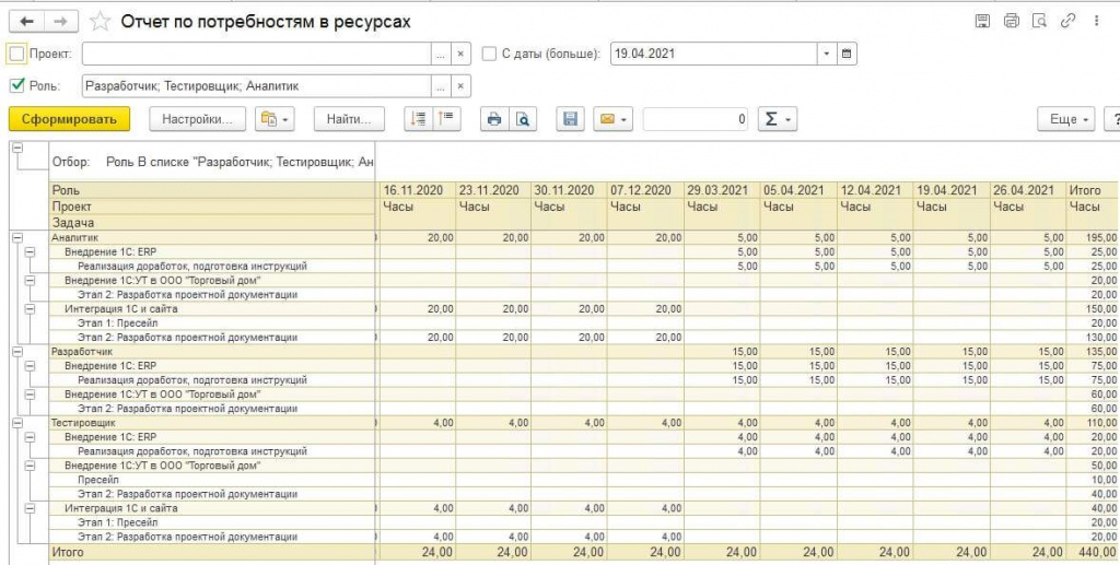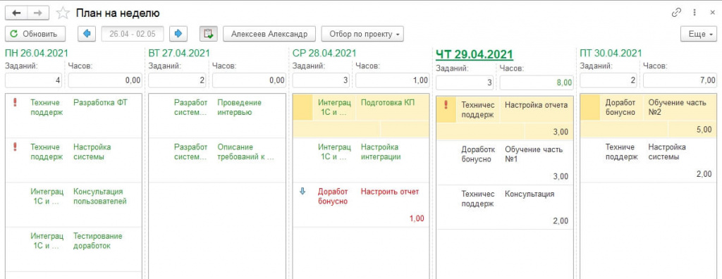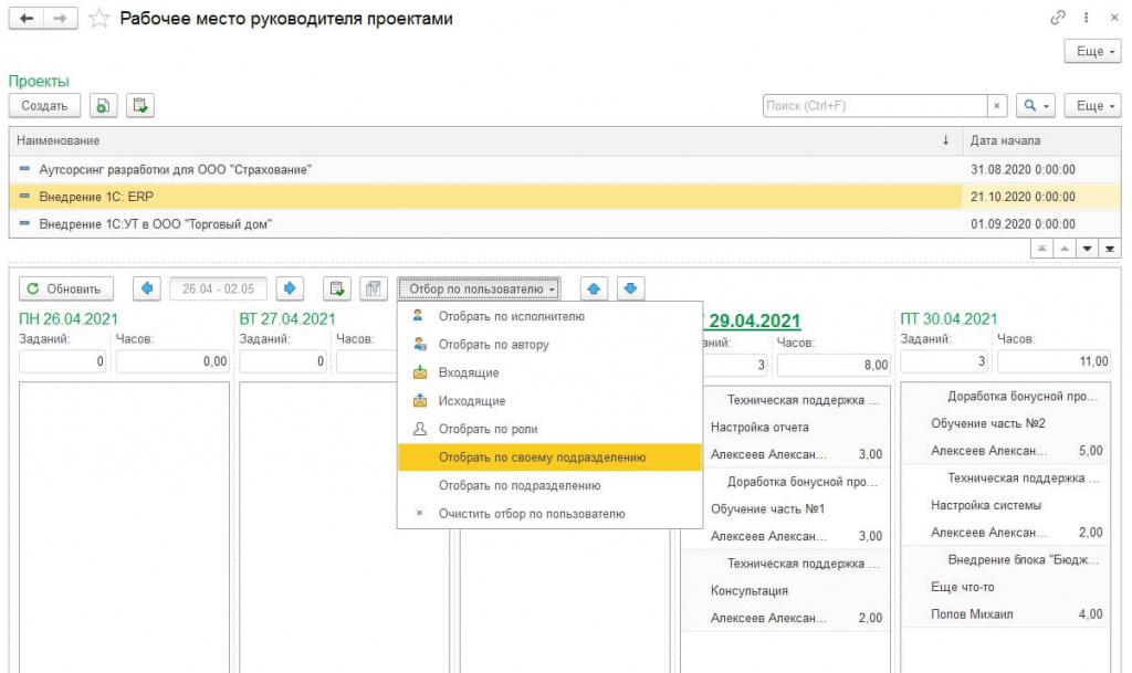 - Удобно управлять загрузкой отдела, ролей и отдельных специалистов.