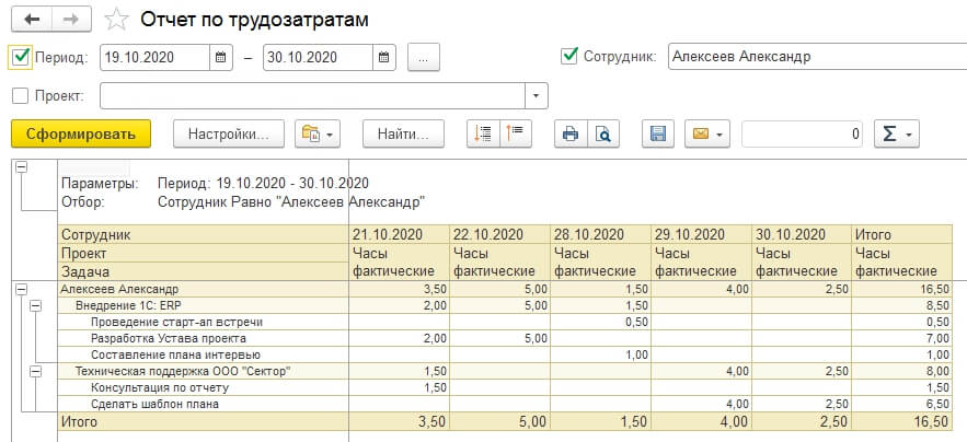 по проектам, подразделениям, сотрудникам или любым другим разрезам