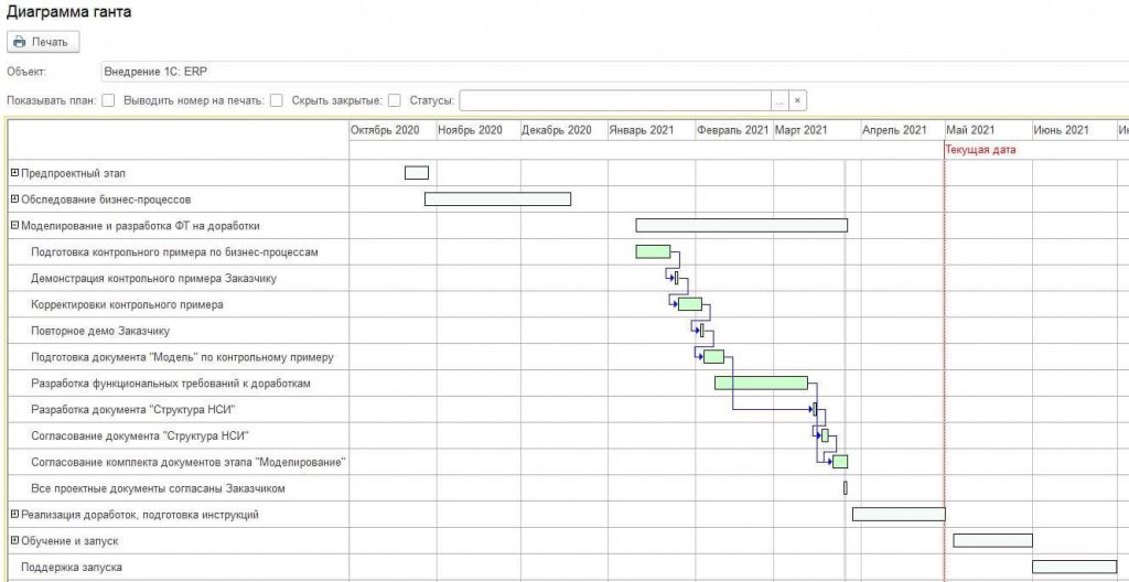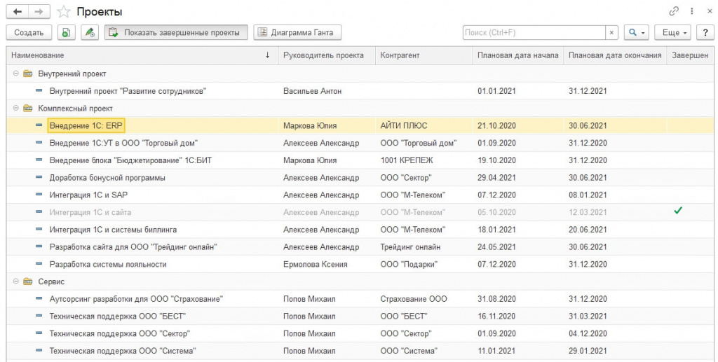 Подсистема (расширение) для типовых конфигураций 1С предназначена для управления любыми проектами по любой технологии. Система помогает организовать работу проектного отдела или всей организации: от верхнеуровневого планирования и контроля хода проекта