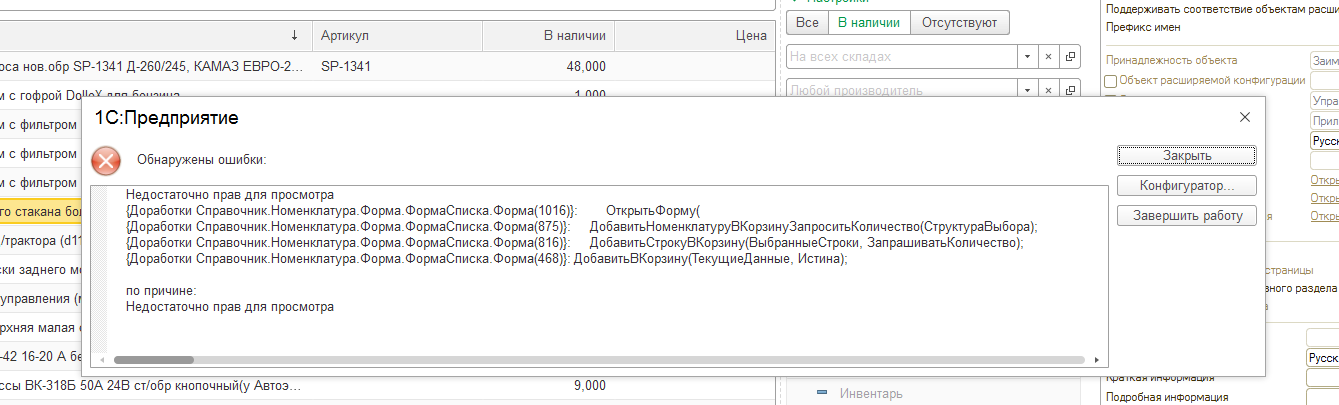 Исправлены ошибки в списке номенклатуры и отображении цены