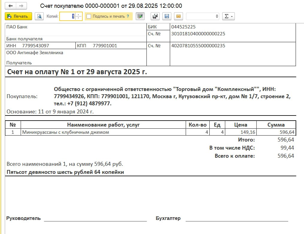 Было: менеджеры вручную копируют реквизиты и списки товаров в Word. Постоянные ошибки в цифрах, «съехавшая» верстка и потеря времени
