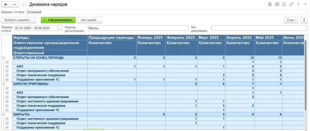 Анализирует открытые, зарегистрированные и закрытые наряды во времени. Помогает:
