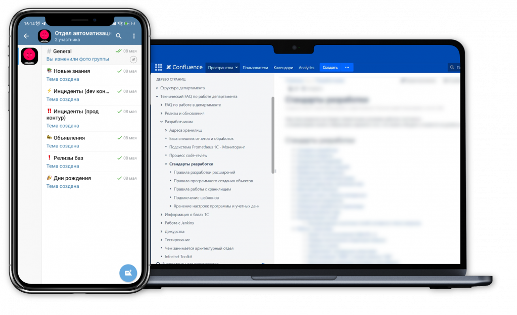 Использование рабочих чатов по темам. Для корпоративного общения мы используем Telegram – популярный мессенджер с возможностью создавать темы и подтемы в чатах. У нас много чатов: для аналитиков, разработчиков, отделов, департамента и др. Кажется сложно и запутанно, но если замьютить ненужные темы, доступ к информации становится быстрым и удобным.